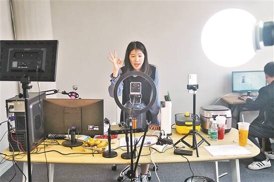 作为该基地直播首秀的主人公,陈晓敏从去年寒假开始到八方盛世公司实习,经过几个月的锻炼,现在已经能单独负责直播带货。她告诉记者,在学习直播带货的过程中,自己对新媒体行业有了更深刻的认识,对相关平台运作内容与流程已经十分熟悉了。“当前随着直播等新媒体行业的蓬勃发展,直播行业作为时代的风口,具有非常好的职业前景。” 陈晓敏表示,主播这一行业与她所学的电商专业对口,自己也具备相关的基础知识,在学习的过程中逐渐明确了喜欢的专业方向,找到了自己的兴趣所在。