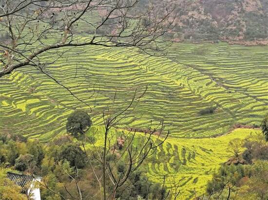 在地头观赏油菜花的当儿,我在想,满眼尽现“黄金甲”的婺源,是否还能种些别的油料作物?在县城一家个体餐馆吃饭时,年轻的老板给我解了疑。他说,种植油菜是当地的传统,不知种了多少代了,一是气候水土适宜的原因,婺源地湿土黏,油菜最爱这种肥沃;二是油菜粗生又抗病,产量也高,榨出的油口感好。他说我刚才点的一荤一素两样菜,都是用菜籽油炒的,我回味了一下,确实清香可口。陈老板还告诉我,婺源的土地一年种两茬,一茬是稻谷,每年夏初育种插秧,秋后割稻。整理罢农田,接着种上油菜,至翌年油菜开过花,菜籽成熟,收获榨油。就这样轮番耕种,循环往复,大地才不负勤劳的稼穑之人。