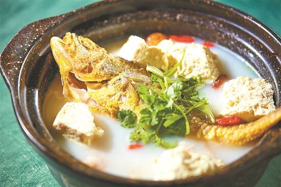 该餐厅的下酒小菜咸香酥脆黄花鱼、先炸后煎再以秘制酱料焖煮的软煎黄花鱼、以纯地瓜粉包裹鱼肉搭配鲜蔬的砂锅黄花鱼汤、以黄花鱼制作的咸鱼炒芥蓝,也是不少食客的心头好。据悉,为了最大限度地锁定黄花鱼美味,莆田会要求供货从装箱到送达其各地餐厅,全程不得超过24小时。
