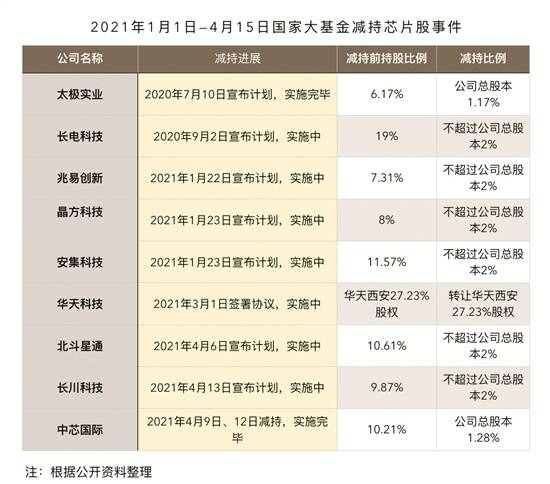 从今年开年至今,已有9只芯片股发布国家大基金减持股份计划的相关进展。其中不乏大陆晶圆代工龙头中芯国际、国产IC封测业第一股长川科技等绩优股。而减持计划公布后,多只相关芯片股的股价不同程度出现小幅下跌。