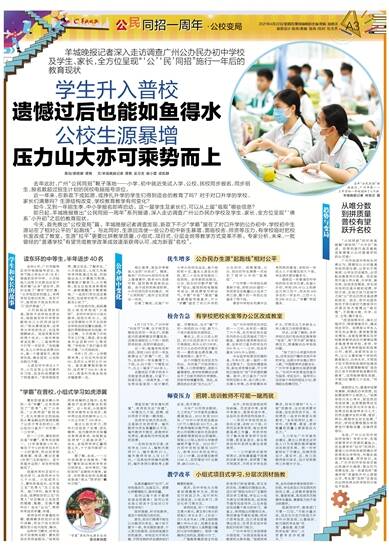 即日起,羊城晚报推出“公民同招一周年”系列报道,深入走访调查广州公办民办学校及学生、家长,全方位呈现“‘佛系’小升初”之后的教育现状。