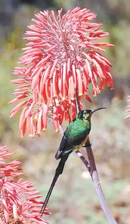 为康氏芦荟授粉的太阳鸟(南非)