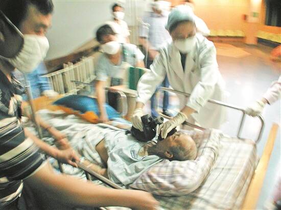 2003年,广州,广东省中医院紧急抢救一名疑似非典病人 黄伟江 摄