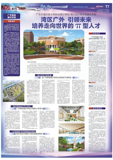 广东外语外贸大学附设南沙学校坚持世界眼光、国际标准、中国特色、高点定位为办学方向,为大湾区打造前瞻性教育经典品牌,满足每一位学生的成长需求与未来发展。