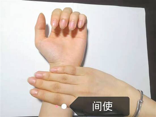 操作:可先用小拇指掌侧从上至下竖擦胸骨至胸骨微微泛红,约五分钟,再从肋骨从上往下数至第四肋(从锁骨摸下来,能摸到的为第二肋,依次往下数),横过来在胸骨上即为膻中,或者在其上下按压,找最疼痛的点;用手掌擦热手臂掌面,再用拇指点按间使穴,被压侧手掌握拳上下屈曲,随着屈曲运动,指下酸胀感会越发明显。