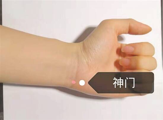 操作:手掌4指并拢,放于内踝最高点上,胫骨后食指处即为三阴交;神门位于腕掌侧横纹尺侧端,尺侧腕屈肌腱的桡侧凹陷处(小指延伸下来,到手掌根部末端凹陷处),少府位于掌面,小拇指屈曲,指端下即是少府穴,可用拇指按揉或用筷子等较为圆钝之物轻轻点揉至有酸胀感,时间约3-5分钟。