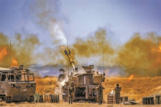5月12日,以色列炮兵在以色列南部城市斯代罗特向加沙地带目标射击 新华社发
