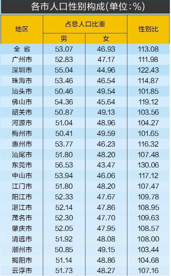 “外省流入人口性别比高低与产业结构有关,广东是全国制造业大省,产业结构重型化特征明显,对男性劳动力需求量增加。”杨新洪表示。