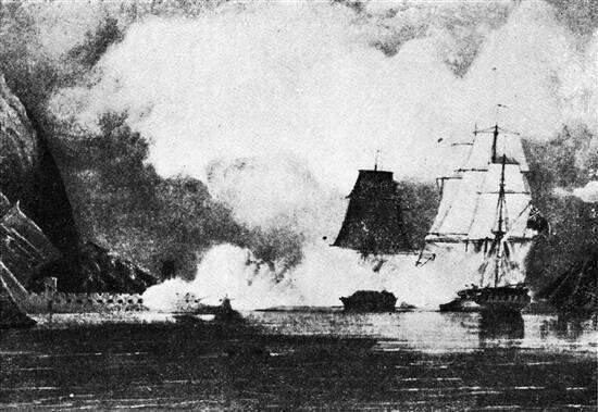1841年1月7日,英军舰队进攻虎门,广东水师提督关天培率守军殊死抵抗。图为虎门海面的激战场面
