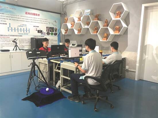 广州市轻工职业学校学生在测量3D模型数据