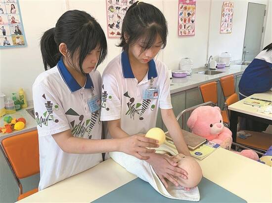 实践性强、体验性强是职业教育的鲜明特点。因此,“生动形象”便成为职教课堂的关键词。在广州市幼儿师范学校的奥尔夫音乐活动课上,学生们在老师的引导下,模拟幼儿上课过程,感受丰富的艺术世界。在课堂上,音乐不再仅仅是旋律和节奏,而是与儿歌说白、律动、舞蹈、戏剧表演等相联系。在早教课堂中,记者还现场观摩了老师如何开展婴幼儿头面部抚触的课程。“抚触时,要用浴巾包裹住宝宝身体或腹部,以免宝宝受凉。”授课老师讲解着课程内容,学生们用婴幼儿模型亲身实践,感受课程内容。整个课堂生动活泼,内容丰满。