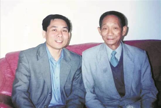袁隆平与本报记者袁增伟合影