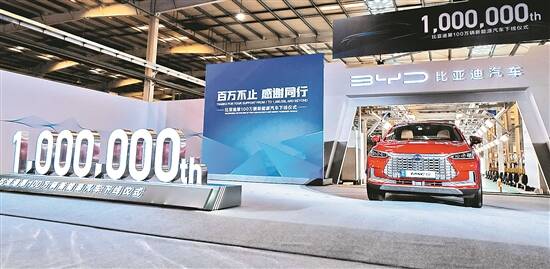 新能源汽车已成为全球汽车产业转型发展的主要方向和促进世界经济持续增长的重要引擎。比亚迪第100万辆新能源汽车下线,成为中国首家完成百万辆新能源乘用车制造的车企。