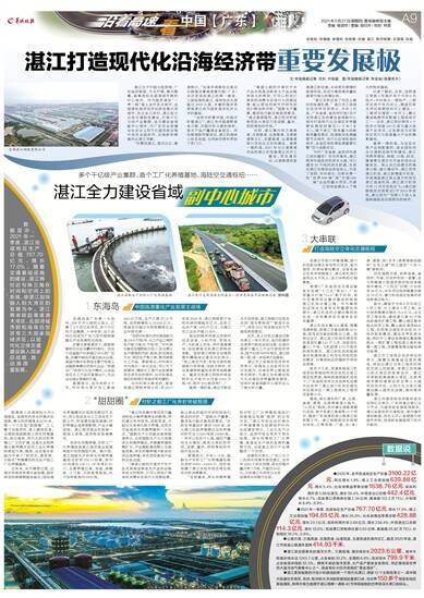 “湛江目前迎来了历史上最好的发展机遇。” 湛江市工信局总经济师关雨表示,今年3月底,广东省委、省政府印发《关于支持湛江加快建设省域副中心城市打造现代化沿海经济带重要发展极的意见》(下称《意见》),赋予湛江“服务重大战略高质量发展区、陆海联动发展重要节点城市、现代化区域性海洋城市、全省区域协调发展重要引擎”四个战略定位。
