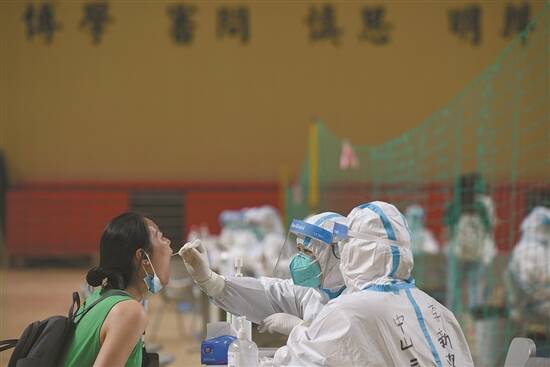 5月30日,中山大学南校园13000多名学生完成了核酸检测。中大5万余名学生、近8000名教师,在6月1日前完成了采样。此外,中大等高校提出,适宜接种的师生员工要积极接种新冠疫苗,实现“应接尽接”,提高疫苗接种率,尽快建立免疫屏障。