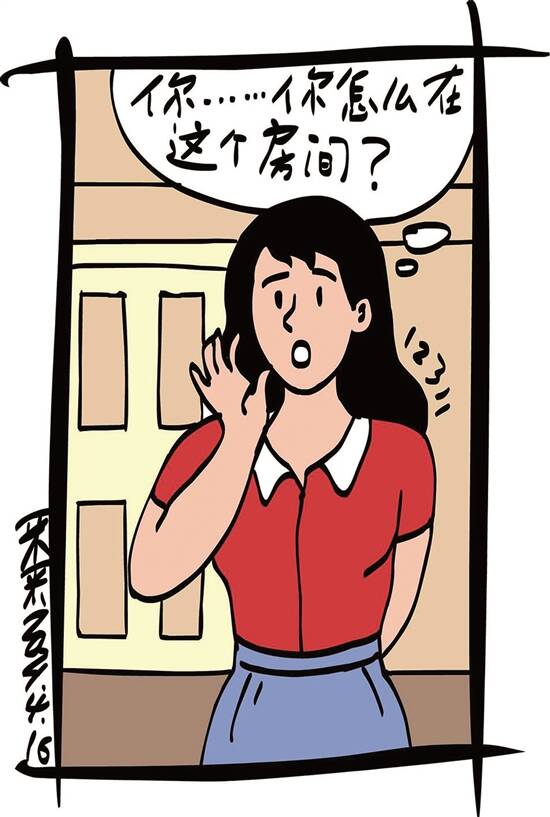 在大堂接待处,朱红办理好入住手续,来到301号门口,门上贴着一张纸条,上面写着两个名字:朱红、汪绍敏。朱红一愣,返回一楼,对接待处的小男生说:“你怎么把我和一个女生安排在一起?”小男生翻开登记表,朱红发现,龙祥与一个叫嵇晓林的女同事分在202房,不禁乐了。小男生连连道歉:“对不起!我初来乍到,那就让龙哥跟你住一起吧。”