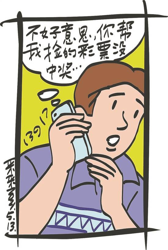 晓庆接过彩票,连连向女子道谢,不想女子说:“看你小气得,说声谢就完了呀?”晓庆一愣,没想到女子会这样为难他。正不知所措,女子又说:“你掉的彩票,说不定能中大奖呢。如果丢了,你损失就大了。”晓庆没想到女子竟会这样想,就说:“那好,这张彩票如中了一等奖,我就分你一半奖金。”女子说:“就是二等奖你也要分我一半!”晓庆连连答应:“行,给我留个联系方式,如果真中了奖,我就分你一半。”说完,两人互留了电话。