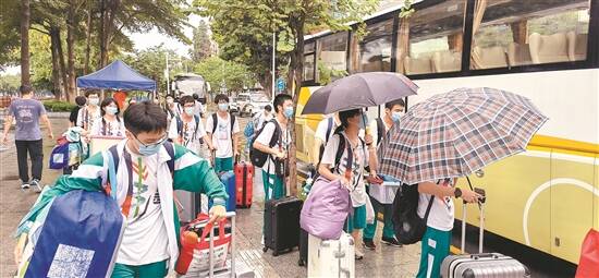 羊城晚报讯 记者蒋隽报道:13日上午,经过十几天的封闭后,广东实验中学(以下简称“省实”)800多名完成高考的高三学子获准离校回家了(见上图,学校供图)!