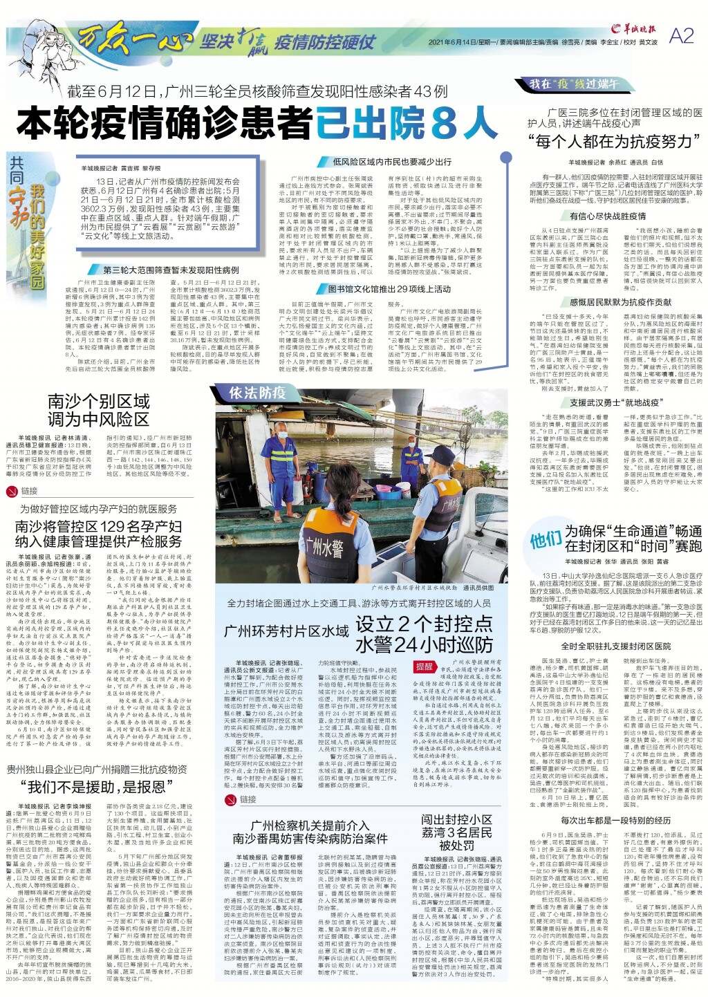 广州环芳村片区水域设立2个封控点水警24小时巡防