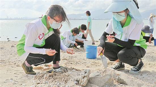考察同时,师生以清理废塑料、废渔网等海漂垃圾等多种形式开展志愿者“净滩活动”,共同用实际行动保护环境。