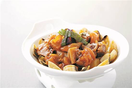 潮馔的潮味元贝羹,大厨选用新鲜元贝,拆肉去壳,加入九层塔,其独特的清香突现了元贝的鲜甜,让这道潮式海鲜羹更具地方特色。由于元贝本身就很鲜,与九层塔同煮,香味更馥郁,九层塔在热汤中缓缓散发香味,回味悠长。