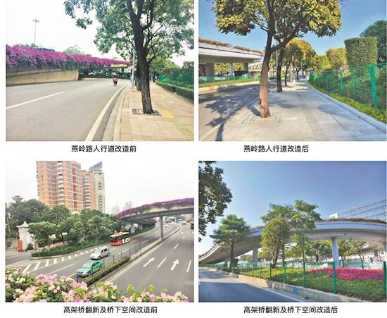 修整道路、清理墙面、移栽植物……利用高架桥桥底空间、高速公路边坡绿地、高快速路收费站闲置绿地等区域,天河区充分拓展多元绿色空间,增强市政地块的使用率。比如,在科韵路站北侧东西两方向高架桥匝道下方空间,巧妙利用地形打造草坡、植被缓冲带,形成通透、疏朗的植物景观。值得注意的是,此次改造还照顾到残障人士、行人、机动车驾驶者等不同人群的需求。比如,优化公交车站、调整交通掉头位、规划盲道,等等。
