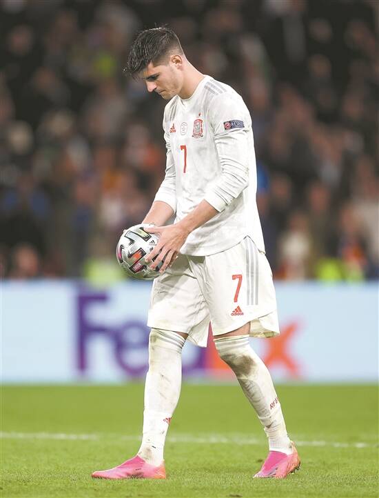 中锋莫拉塔在第62分钟替补出场换下费兰·托雷斯,才把握住了进球机会。第80分钟,奥尔默送出妙传,莫拉塔突入禁区推射把比分扳平。莫拉塔在最近两届欧洲杯取得6个进球,升至西班牙队史第一,“金童”托雷斯以5个欧洲杯进球排名第二,比利亚以4球排名第三。