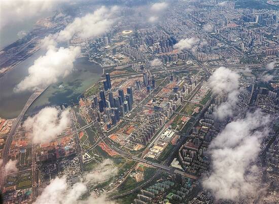从飞机上俯瞰粤港澳大湾区前海深港现代服务业合作区 羊城晚报记者 王磊 摄