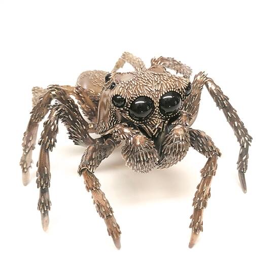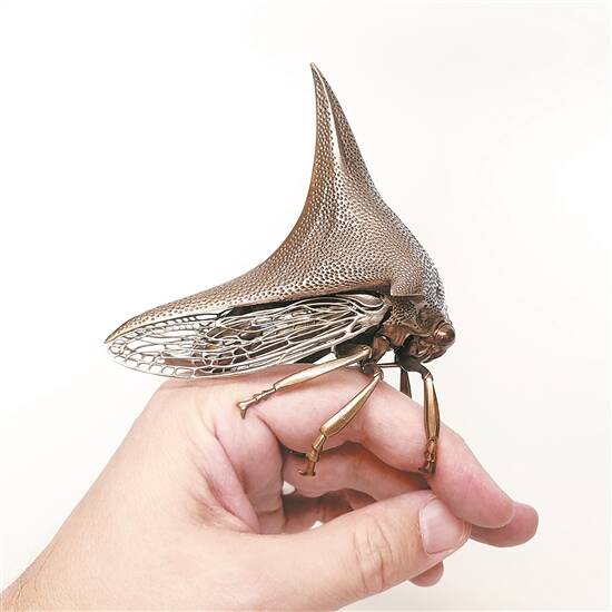 他选择了用青铜与银为原材料,制作出了一系列金属版的昆虫标本。其中有三叶虫之类的已灭绝的远古生物,也有现代昆虫,比如螳螂、跳蛛、蚂蚁等。
