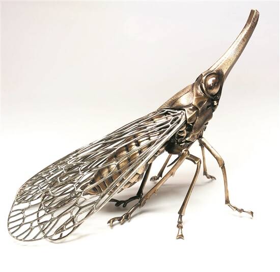 美国芝加哥大学的艾伦·德拉蒙德博士在对史前海洋生物及化学进行广泛研究的同时,也开发了自己的艺术天分,尝试着将那些已灭绝了的远古生物,一一转化为雕塑作品。近期,他刚结束在美国西雅图罗克拉鲁画廊里一个名为《金属昆虫》的展览,展出的正是他的这些精美作品。
