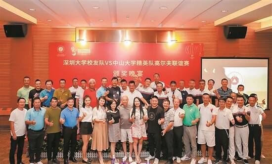 羊城晚报讯 本周,深圳大学校友队VS中山大学精英队高尔夫联谊赛暨深大校友高尔夫球俱乐部7月例赛在东莞观澜湖球会诺曼球场开杆。本次联谊赛有64人参赛,最终,中山大学精英队在团体赛中胜出,而个人总杆冠亚季军依次被徐学光(78杆)、符捷频(80杆)、廖戈(80杆)获得。 (梁劲松)