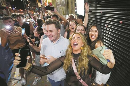 19日凌晨,伦敦人在酒吧外狂欢迎接“解封”