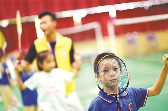 小北路小学(天香校区)暑期托管班学羽毛球的学生 羊城晚报记者 林桂炎 摄