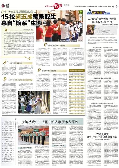 7月20日,广州市招考办官网公示2021年广州市普通高中学校自主招生预录取资格考生名单,预录取1227人,比招生计划少38人,5所学校有流标。