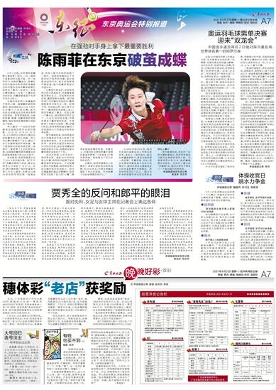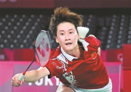 在东京奥运会羽毛球女子单打决赛中,中国选手陈雨菲战胜中国台北选手戴资颖,夺得金牌 新华社发