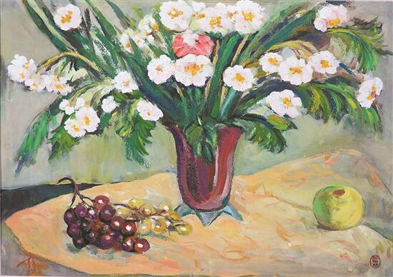 进入展厅,映入眼帘的第一件作品是关紫兰的油画《瓶中繁星》。关紫兰是中国第一批留学日本的画家,较早地接受了西方现代艺术,被誉为民国时期女油画家四杰之一。“关紫兰非常勇敢地将野兽派的形式和结构用自己的方式表现出来,独立于时代语境。” 策展人廖沙泥赏析道。