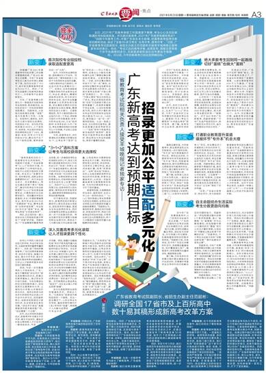 “目前,广东省分类考试、综合评价、多元录取的普通高校考试招生模式已经基本形成。”范韶彬谈道,如今广东省高职高专与普通本科的分类考试已经成型,前者主要通过春季高考录取,录取量约占专科招生计划的70%;后者主要通过夏季统一高考录取,录取以高考分数作为主要参考。研究人才和技能人才的不同录取模式,折射的是不同类型高等教育对于学生基础素质的不同要求,进一步保障高校为国家培养人才的效果。这对于目标考生来说,也是另一种意义上的“公平”——不会被普遍意义上的成才标准绊住手脚。