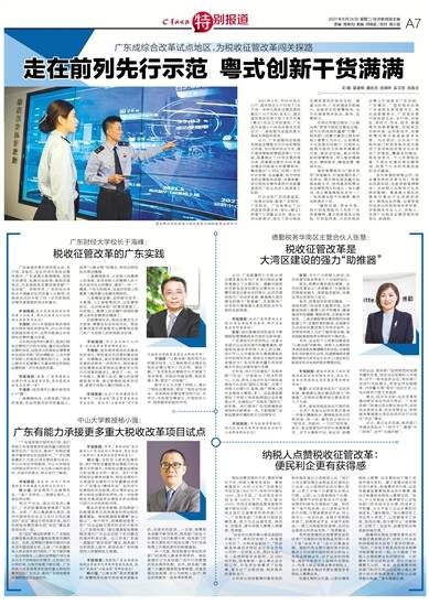 系列举措的新鲜出炉,标志着怎样的改革方向?有哪些改革实招、创新举措值得期待?对纳税人办税将产生怎样的影响?粤港澳大湾区的营商环境会产生怎样的改变?围绕这些问题,记者深度对话多位财税领域专家学者、涉税服务专业人士、纳税人,共探广东税收征管改革的新变化、新趋势。