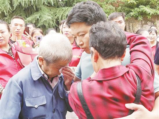 7月8日上午,赵伟手捧一束鲜花,在现场多名民警、记者、志愿者及附近居民的共同见证下,走向自己曾经无数次想要回忆起具体长相的亲生父母。眼前的这一小段路不过20余米,赵德却仿佛看到了自己这29年来在寻亲路上经历过的种种坎坷与辛酸。