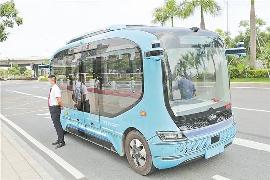 地铁十八号线开通后,市民将可搭乘智能网联公交来往横沥站和四号线蕉门站。记者从广州市南沙区交通运输局了解到,随着地铁十八号线首通段开通日期临近,该局已制定地铁四号线和18号线的公共交通衔接方案,其中,蕉门站和横沥站之间将建设智能网联智慧公交示范段,在两站之间开通具有智能网联功能的智慧公交车。8月19日,记者在灵山岛尖率先体验了正在进行测试的自动驾驶智能小巴。
