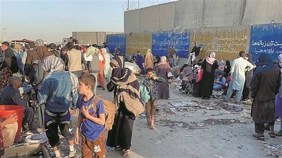喀布尔机场外仍聚有大量民众等待机会离开阿富汗 图/人民视觉