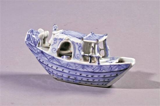 该器设计巧妙,造型灵秀,是目前所知全国唯一的元代青花船形水注。广州市文物总店副研究馆员张卫星介绍:“水注质地多样,玉石、金属、陶瓷等材质均有之,多为象形者。元代青花船形水注系稀世珍品,仅见于广州博物馆。”