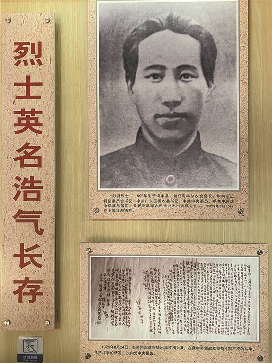 海丰红宫红场旧址纪念馆内关于彭湃事迹的介绍 赵映光 摄
