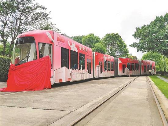 广州有轨电车再添新景观,“中共三大主题列车”今日上线 羊城晚报资料图 徐振天 摄