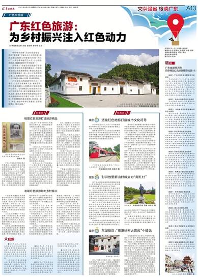 2021年,广东先后出版了《红色广东丛书》《全国革命老区县发展史丛书·广东卷》,在全面梳理广东红色文化资源的同时,深入挖掘了广东红色文化内涵,丛书的出版,将有力地推动广东红色旅游的发展和革命老区的振兴。