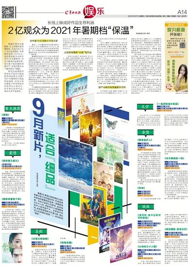 随着《长津湖》《我和我的父辈》等重点影片进驻国庆档,市场或将在低迷的暑期档后迎来一波票房高潮。在此之前的9月影市,虽然缺乏大片入市,但却有不少值得期待的中小成本国产片。尤其是中秋档,多部各类型影片扎堆公映,观众可以在闲暇时选择一二,前往影院“细品”。