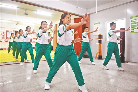 9月6日,广州绿翠现代实验学校的学生们在课后学习龙形拳