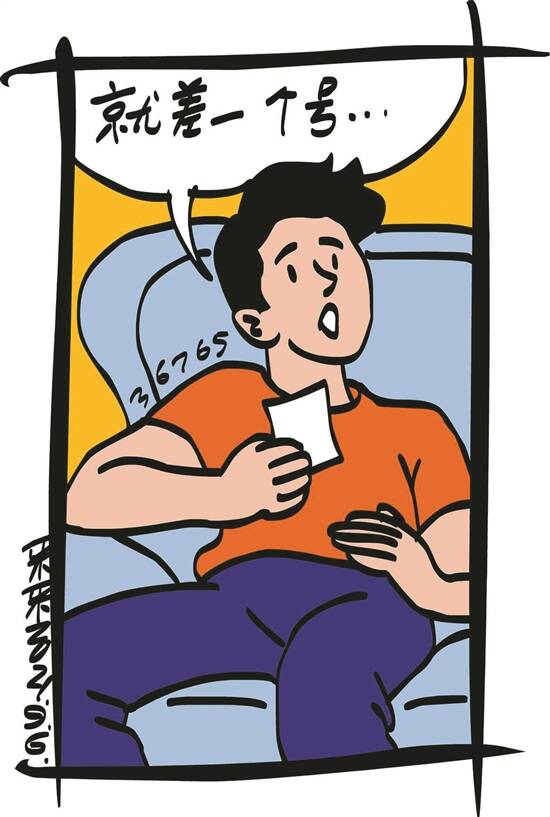 客厅电视机前,当最后一个开奖号码诞生时,黄炜狠狠地拍了下大腿,大喊一声:“就差一个号!”卧室里正在敷面膜的媳妇晓娅急忙跑过来问:“中奖啦?”黄炜既兴奋又可惜地回道:“这组号码坚持买了一年,终于守得云开见月明。偏偏,还是错了一个号,二等奖奖金只有5000块而已。”