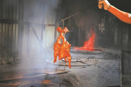 笔者试了一试:烧好的整鸡被分为几块,用手抓起就能送入口中。连皮带肉地咬下一块,首先感受到的就是鸡肉的鲜香涌入鼻腔,美味的汁水从肉中溢出。再细嚼慢咽,鸡皮被火烤得酥脆可口,但是皮之下的鸡肉,却保持着松软鲜嫩,没有半点被烤老的迹象,吞咽后,还能感受到香味徘徊在舌尖,可谓口齿留香。