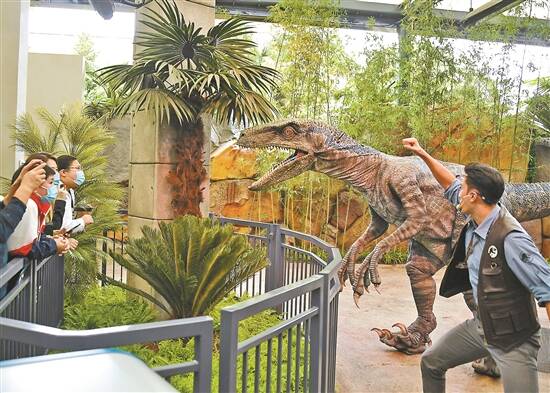 北京环球影城主题公园,游客在侏罗纪世界努布拉岛主题景区感受奇遇迅猛龙互动体验 新华社记者 任超 摄